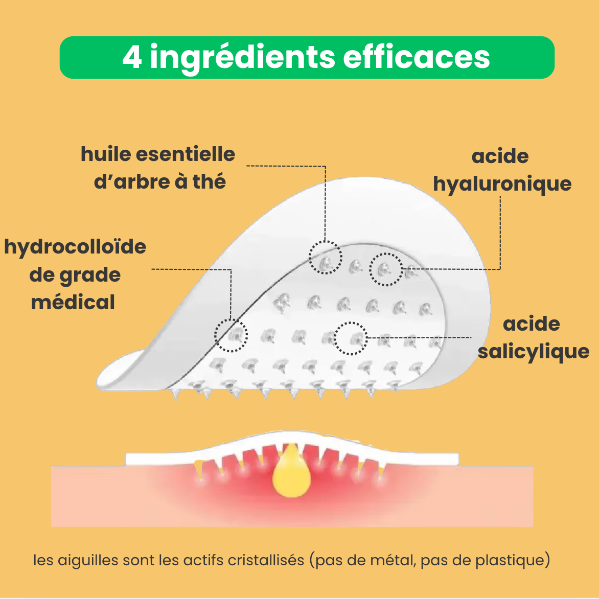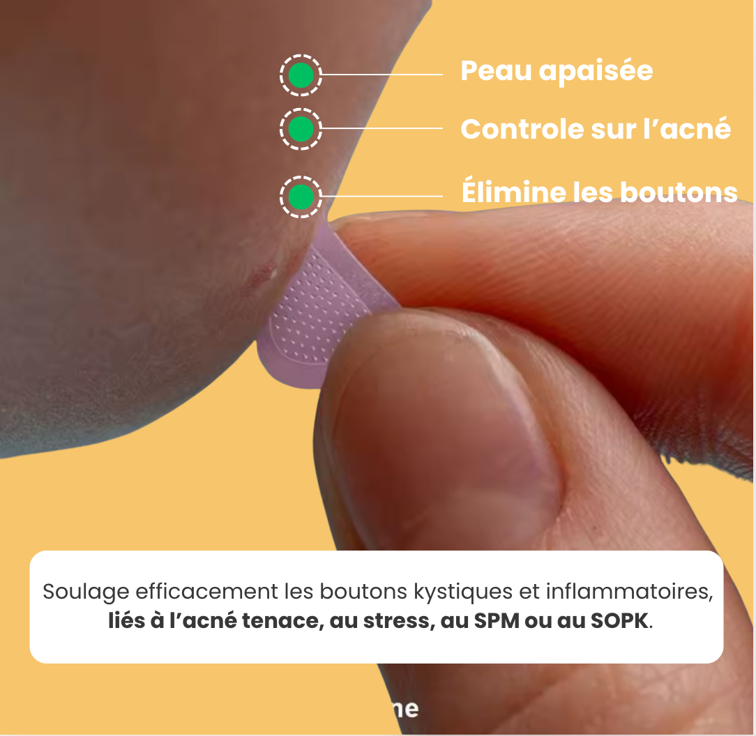 Découvrez le patch anti-boutons à double technologies micro-aiguilles et hydrocolloïde. Cible les boutons sous-cutanés, agit en profondeur dès les premiers signes d’inflammation.