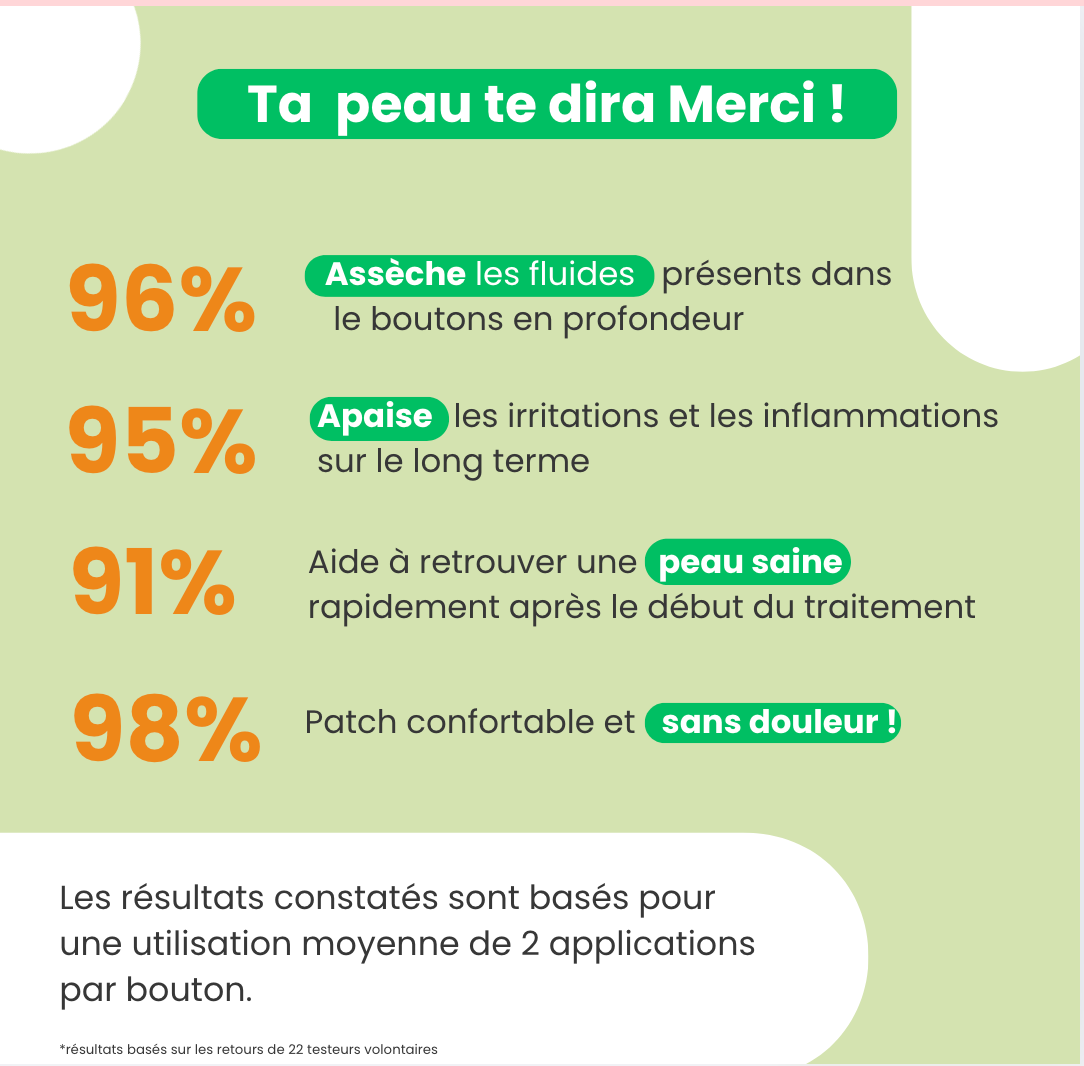 constatent que le patch aide à assécher les fluides présents en profondeur dans la zone ciblée, tout en laissant une peau agréable.