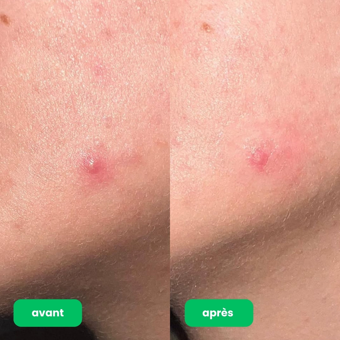Ses micro-aiguilles d'actifs solubles, ultra-fines et indolores pour diffuser un concentré d’actifs puissants directement au cœur du bouton, parfait en cas de éruptions liées au stress, au cycle (pré)menstruel ou dérèglements hormonaux.