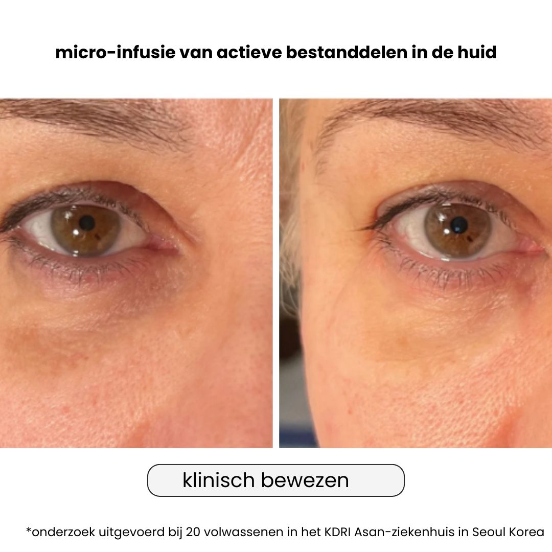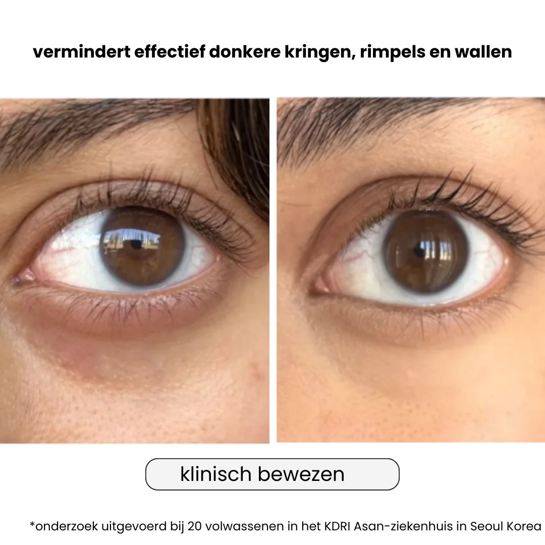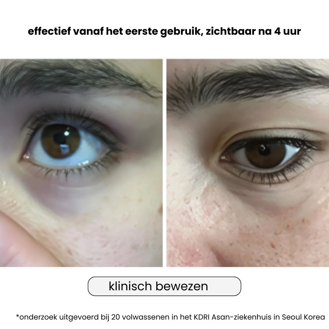 Na een volledige kuur van 4 weken ziet de blik er zichtbaar minder vermoeid, stralender en jonger uit.